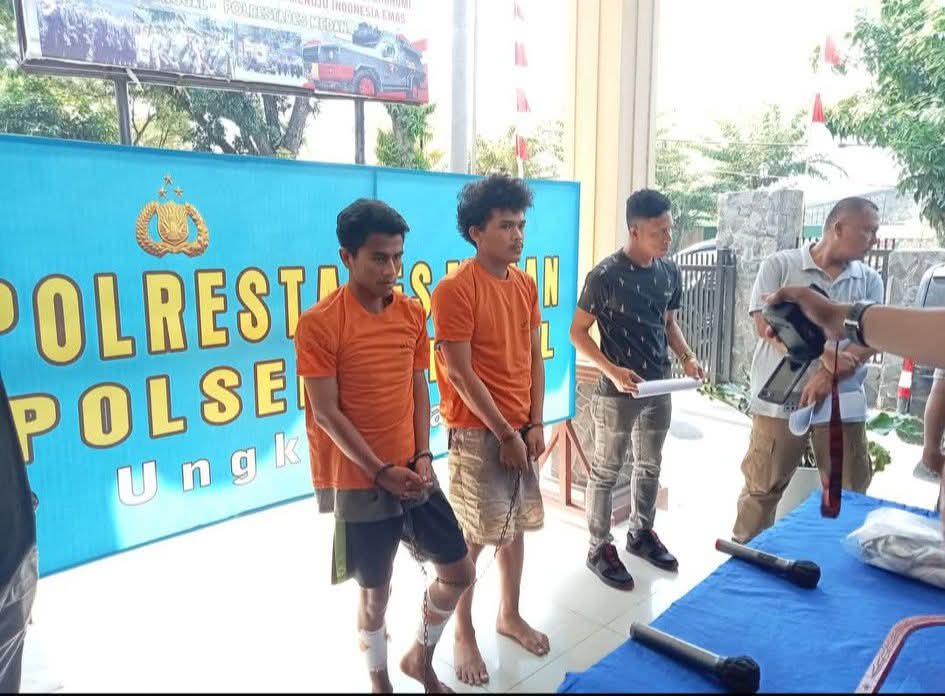 Kapolrestabes Medan Kombes Pol Gidion Arif Setyawan, didampingi Kapolsek Sunggal Kompol Bambang G. Hutabarat dan Kanitreskrim AKP Budiman, mengungkapkan bahwa dua pelaku telah berhasil ditangkap. Mereka berinisil ABS (17) dan RS (20), keduanya warga Sunggal, Deli Serdang.